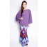 Sheer loose-fitting kaftan top with flared sleeves and hook closure at the back. This kurung set comes with a printed sarong with back zip and hook closure. Inner top not included.