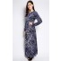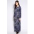 This jubah has been crafted from lycra. Details include maxi length, round neckline, long sleeves, shoulder pads, beaded embellishment along the front and sleeves' end, front hook closure and floral print.