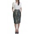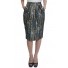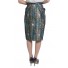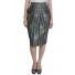 Atria skirt has been crafted from brocade. This skirt features midi length, pencil skirt styling, fitted waistband, back zip and hook closure, side pockets and pleated detail along the front and back as well as multi coloured brocade..