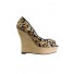 Crafted from man made materials, these sequin-crafted slip on wedges feature peep toe, sequin fabric, rafia wedge and lamb skin inner sole and lining.