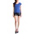 Details include round neckline, short sleeves and loose cut.