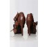 Crafted from calf leather, these platform heels feature criss cross straps and ankle strap with buckle.