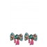 Crafted from mixed materials, these stud earrings feature ribbon shaped rose gold metal plate with multicolour turquoise and pink stones embellishment.