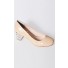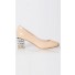 Crafted from man made materials, these slip on pumps feature rounded front toe,crystal heels and lamb skin inner sole and lining.