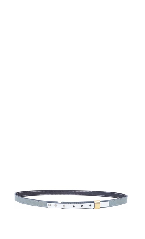 Soft luxurious thin leather belt with foil overlay fastening. This belt has studs closure, fastener and 4 punch holes to give wearer variety of a high-waisted belt or a normal belt that sits on the hips. Comes with its own Thirtyfour dustbag.Material : Calf Skin leather