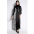 Crafted from polyester, this dress features maxi length, flared cut, round neckline, long sleeves with buttoned cuffs, front button closure and mixed print and solid panels.