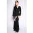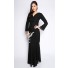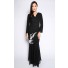 Crafted from chiffon, the slip on top features round neckline, long sleeves, shoulder pads, back zipper closure, hook closure at the front neckline, beaded detailing at the hem and fully lined.