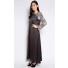 This jubah has been crafted from polyester. Details include maxi length, round neckline, long sleeves, lace overlay detail from the shoulders to sleeves, shoulder pads and back zipper closure.