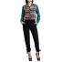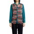 Details include classic shirt collar, long sleeves with buttoned cuffs, front button through closure and geometric printed body panel.
