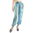 Crafted from rayon, these pants feature ankle length, stretchable waistband, side pockets, gathered ankle cuffs and retro print.