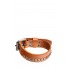 Crafted from mixed materials, this cuff bracelet features studded details on a leather base cuff and adjustable watch strap hook and holes closure.