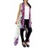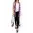 This cardigan has been crafted from crepe de chine silk. Details include open front, sleeveless, long cardigan and hand crafted batik along the neckline, panels and hemline.