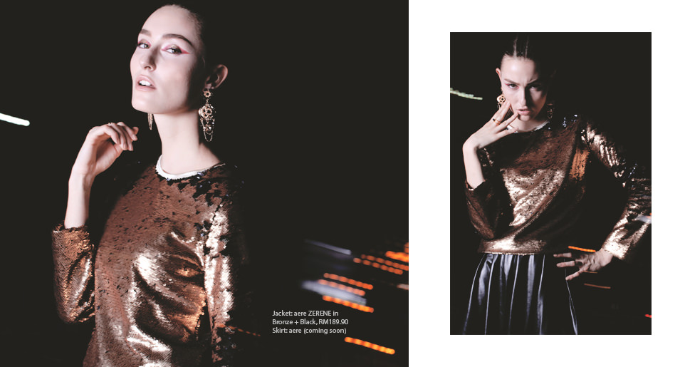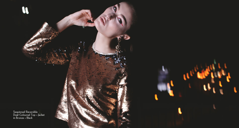 • Zerene Sequinned Reversible Dual Coloured Top + Jacket in Bronze and BlackZerene Sequinned Reversible Dual Coloured Top + Jacket in Bronze and Black