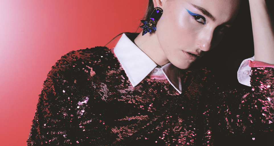 • Zerene Sequinned Reversible Top and Jacket in Rose GoldZerene Sequinned Reversible Top and Jacket in Rose Gold