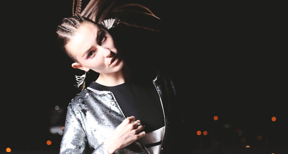 • Zerene Sequinned Reversible Dual Coloured Top + Jacket in Black and SilverZerene Sequinned Reversible Dual Coloured Top + Jacket in Black and Silver