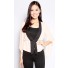 Crafted from polyester, details for this cardigan include open front with waterfall hem, 3/4 sleeves, concealed front hook closure and peplum styling.