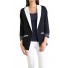 Crafted from polyester mix, this must-have blazer is from Caron Boutique . Details include V-neckline when buttoned, open front with wide white lapels, long sleeves and front pockets.