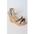 Crafted from lamb and patent leather and other man made materials, these wedges feature open toe, multi straps and inner sole and lining.