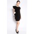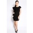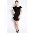 Crafted from mixed polyester, this sleek and edgy dress features mini length, boxed neckline, short sleeves, back zipper closure and white ruffle detailing on one side.