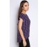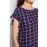 Crafted from chiffon, this top features round neckline, short ruffled sleeves, loose fit, geometric cut out at the back and checkered print.