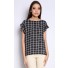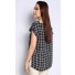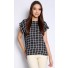Crafted from chiffon, this top features round neckline, short ruffled sleeves, loose fit, geometric cut out at the back and checkered print.