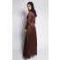 Details for the A'isha dress include maxi length, wrap styling, round neckline when wrapped, long sleeves with zipper opening for easy access during ablution, ribbon belt tie on the front and nursing-friendly.