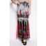 Crafted from chiffon, this suit features a top with cropped cut, round neckline, long sleeves with short outer and back zipper closure. Details for the skirt include modern cut, maxi length, fitted waistband, back zipper and hook closure and printed with flare sides.