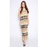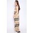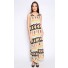Details include maxi length, relax fit, round neckline, sleeveless and tribal print.
